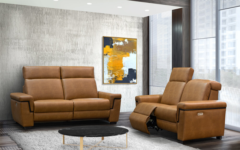 sofa condo avec bois ,tissu ultra leather , tête et pied électrique