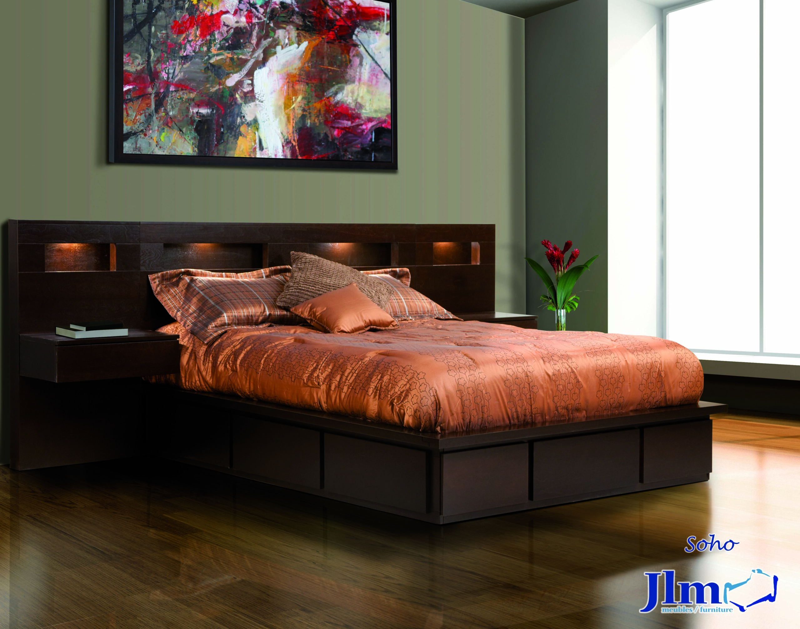 Lit 7 tiroirs queen, tête eclairé au led, 2 tables de chevet avec eclairage au led, 4,699.95$